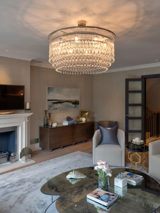 The Spencer Park project embodies timeless sophistication with its carefully selected design elements. Key features include the use of rich textures like emerald velvet and metallic accents, which add depth and luxury to the interiors. A statement crystal chandelier anchors the living room, complementing the serene neutral palette and dramatic floor-to-ceiling windows that offer stunning garden views. Bespoke furniture pieces, layered lighting, and curated artwork complete the design, creating a harmonious blend of elegance, comfort, and modernity throughout the home.